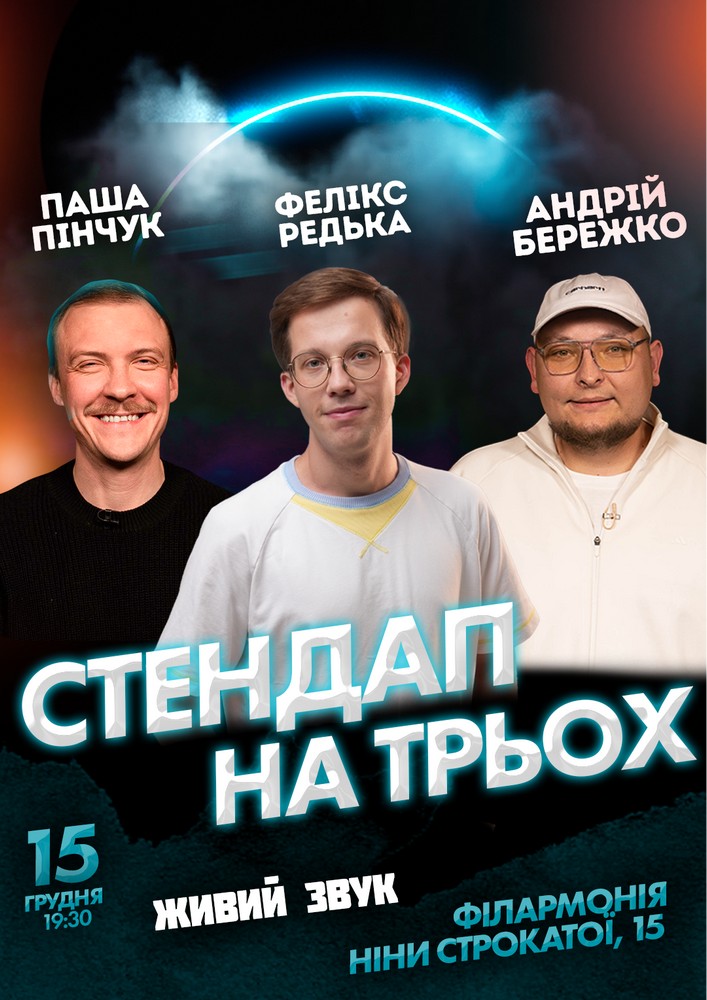 Одеса «Новорічний Стендап на трьох» — це концерт, де три прекрасних коміки поділяться своїми історіями, спостереженнями й думками про життя таким, яким воно є: кумедним, дивним, непередбачуваним.