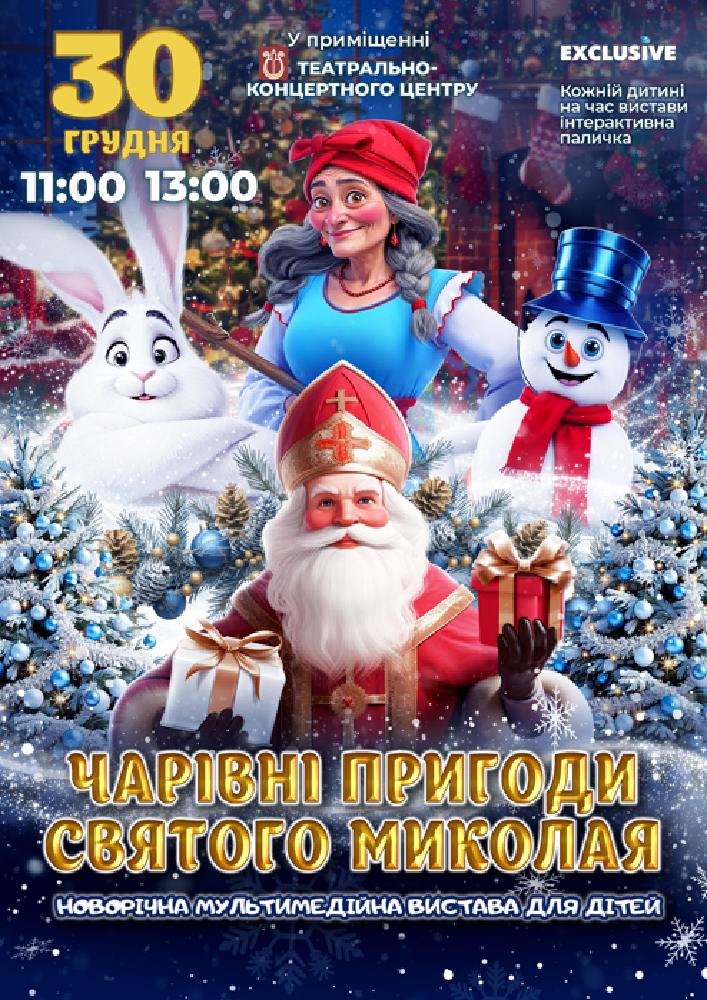 Разом із героями шоу вони потрапляють до школи магії та творять дива. Кожному учаснику на час вистави вручається чарівна паличка, за її допомогою глядачі викликатимуть сніг, вбиратимуть ялинку та допомагатимуть Святому Миколаю повернути листи.