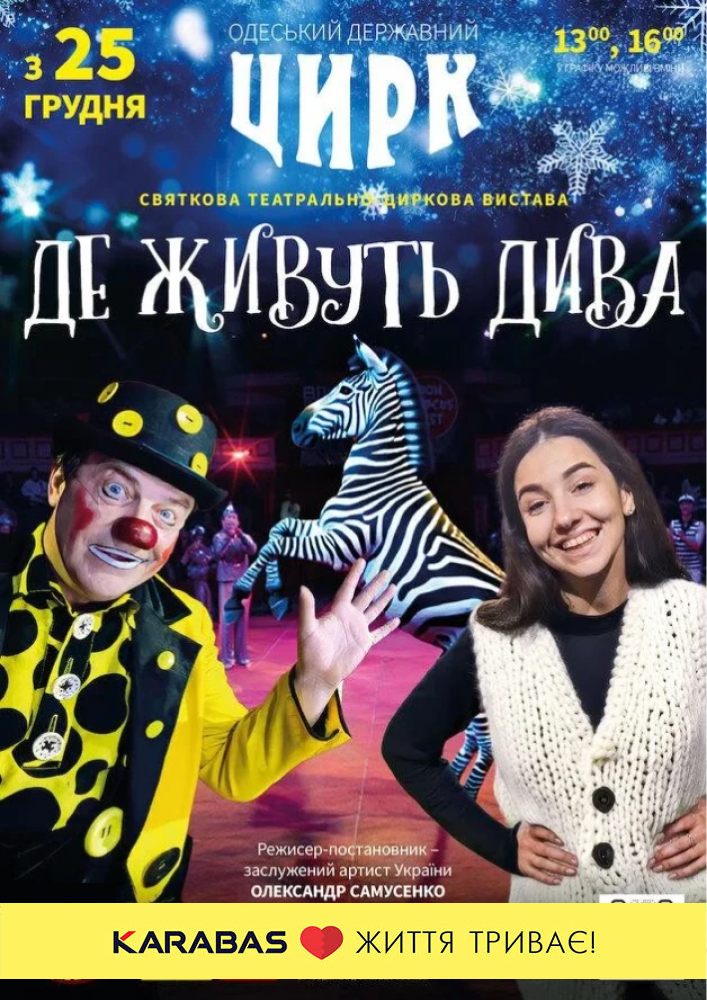 З 25 грудня в Одеському цирку розпочинається унікальна святкова вистава під назвою «Де живуть дива». Це яскраве театрально-циркове шоу об'єднує в собі елементи сучасного циркового мистецтва та театральної постановки, створюючи неповторну атмосферу святкового настрою для всієї родини.