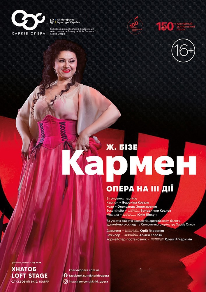 Головні партії виконують: Вероніка Коваль (Кармен), Олександр Золотаренко (Хозе), Володимир Козлов (Ескамільйо), Юлія Піскун (Мікаела).