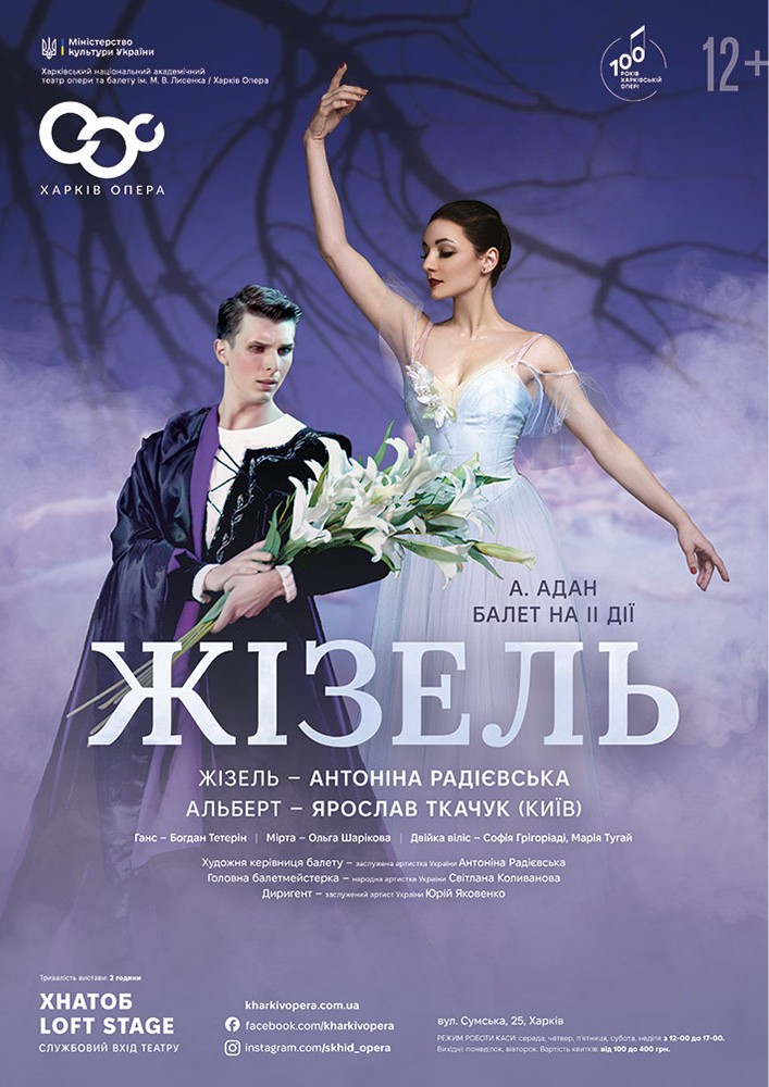 Головні партії виконують: Антоніна Радієвська (Жізель), Ярослав Ткачук (Альберт), Київ, Національна опера України, Богдан Тетерін (Ганс), Ольга Шарікова (Мірта).