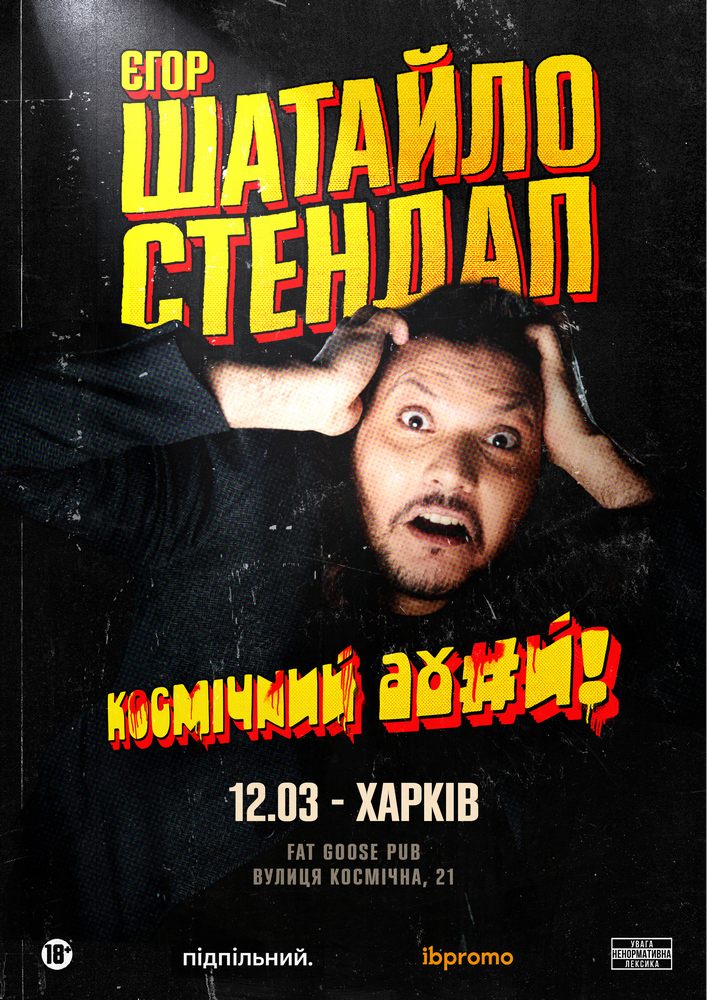 Єгор Шатайло вирушає в тур з новим стендап концертом «Космічний Аху#й». Нові жарти, нова програма. Вас чекає більше години сміху крізь біль, болю крізь сміх, ах#ю (в межах розумного), легкої рефлексії та важкої чудасії. Всіх чекаємо усюди,де б він не був. Беріть квитки.