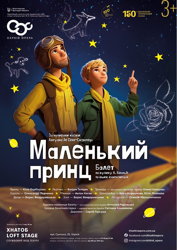 «Маленький принц» – це не просто казка, це притча для дорослих, розказана мовою тіла. У цьому балеті філософський світ Антуана де Сент-Екзюпері оживає через вишукану хореографію, де кожен жест має значення. Разом із головним героєм ми мандруватимемо між зірками, зустрінемо гордовиту Троянду та мешканців різних планет, щоб зрештою зрозуміти: «Найголовнішого очима не побачиш. Пильним є лише серце». Це вистава про вірність, відповідальність та вміння бачити дива у буденних речах. Запрошуємо вас у політ, який змусить серце битися частіше.