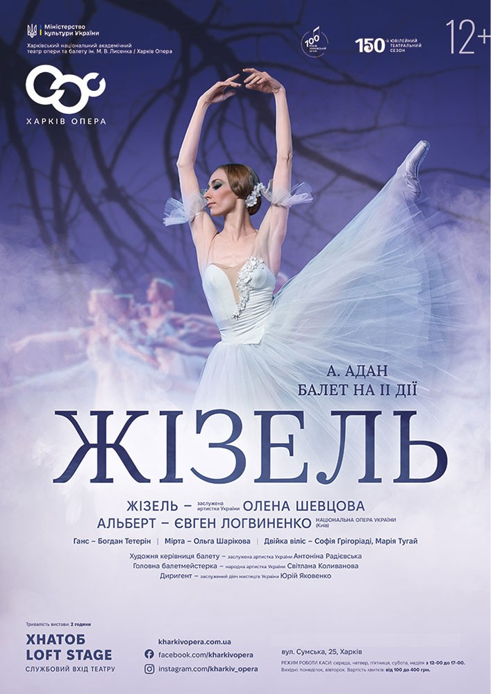 Головні партії виконують: Антоніна Радієвська (Жізель), Ярослав Ткачук (Альберт), Київ, Національна опера України, Богдан Тетерін (Ганс), Ольга Шарікова (Мірта).