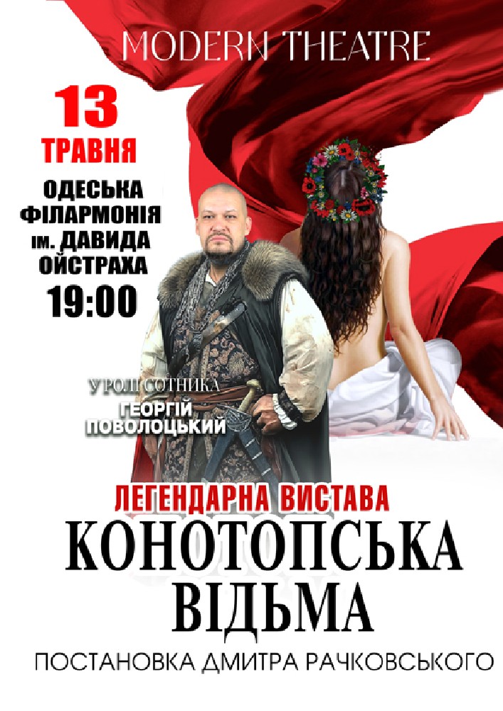 «Конотопська відьма» - гучна прем єра вистави MODERN THEATRE за однойменною сатирично-фантастичною повістю Григорія Квітки-Основ яненко у постановці Дмитра Рачковського. «… А хто він, той сотник Забрьоха? Так він дурень. Конотопський? Ні, справжній… А Пістряк? Чорт… Теж справжній? А хто його зна…Хіба що відьма…»