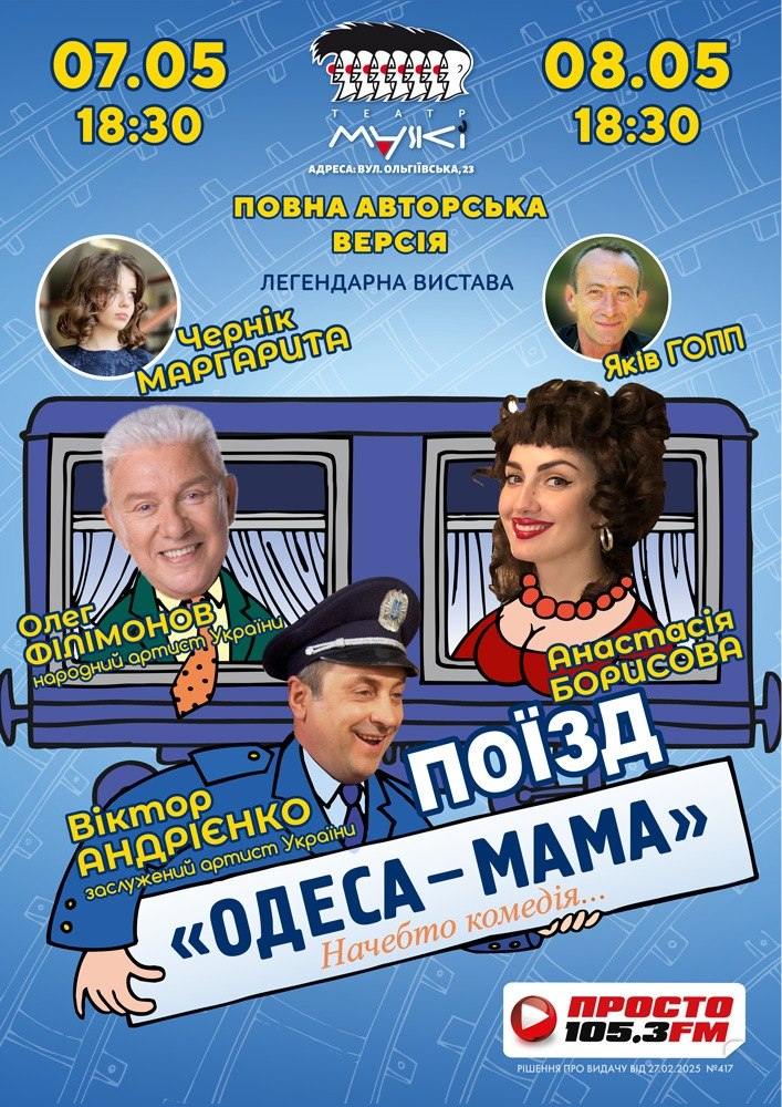 У Будинку Клоунів відбудеться легендарна вистава «Поїзд «Одеса-мама» за участі відомих акторів: Олега Філімонова і Віктора Андрієнка.