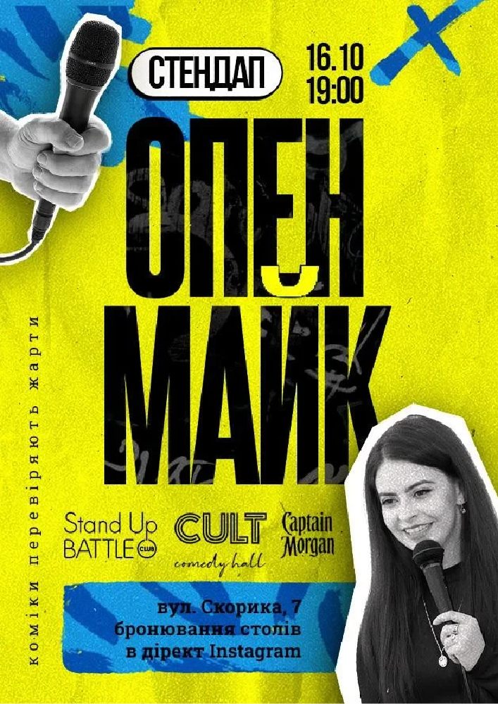 Однією з найважливіших подій для коміка є опенмайк, адже саме це — чи не найкраща нагода перевірити новий матеріал перед публікою. А для новачків опенмайк є можливістю розкрити свій потенціал та спробувати себе у стендап-комедії!