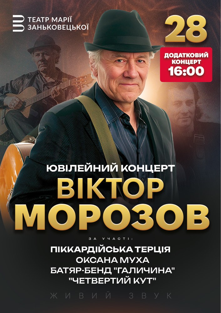 Концертна агенція Susy Production (С'юзі Продакшн) за підтримки Львівського товариства в Києві організовує концерт Віктора Морозова. Захоплююча, ностальгійна і водночас розбишацька подорож у минуле разом із Віктором Морозовим та гуртом “ББ Галичина”.