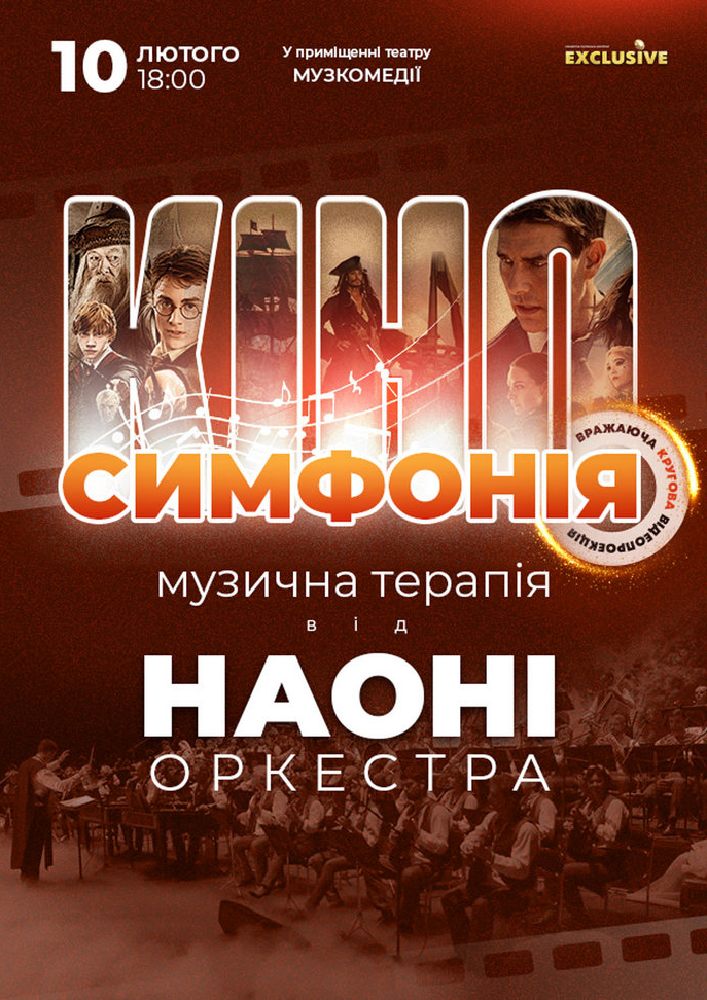 Запрошуємо вас у захоплюючий світ кіно! Жива музика у виконанні НАОНІ ОРКЕСТРА супроводжуватиметься кіно-шоу на великих екранах!