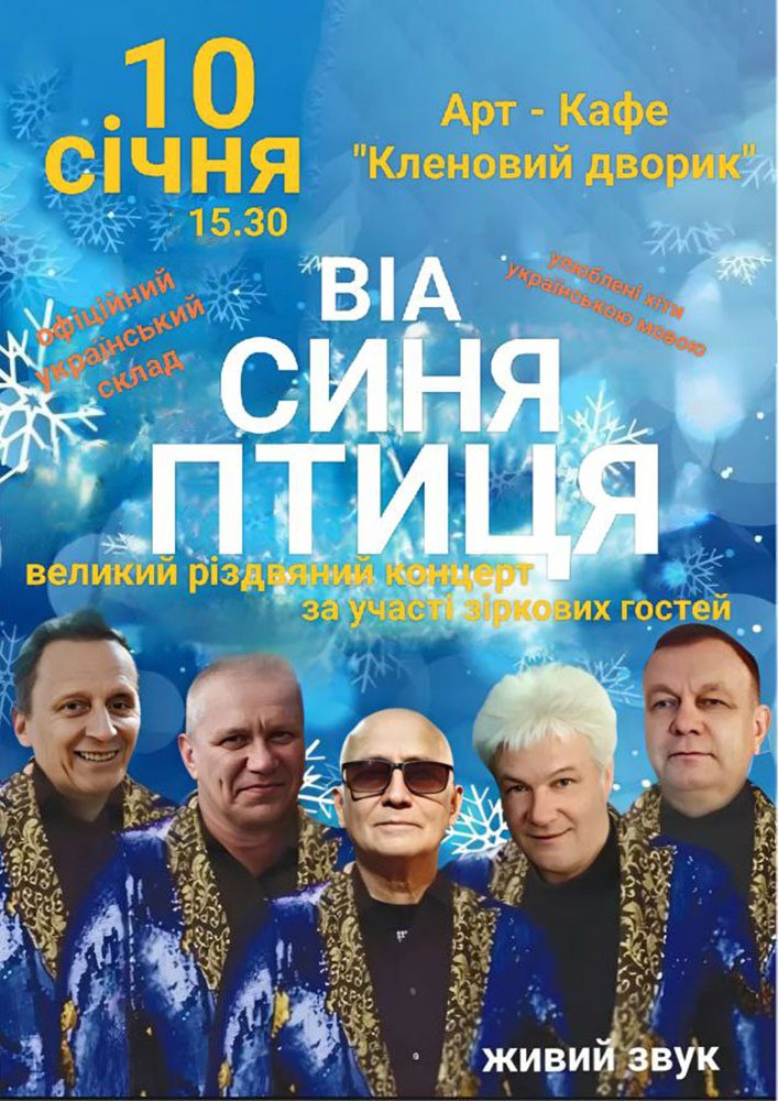 Великий різдвяний концерт легендарного гурту ВІА "СИНЯ ПТИЦЯ" офіційного українського складу з концертною програмою: