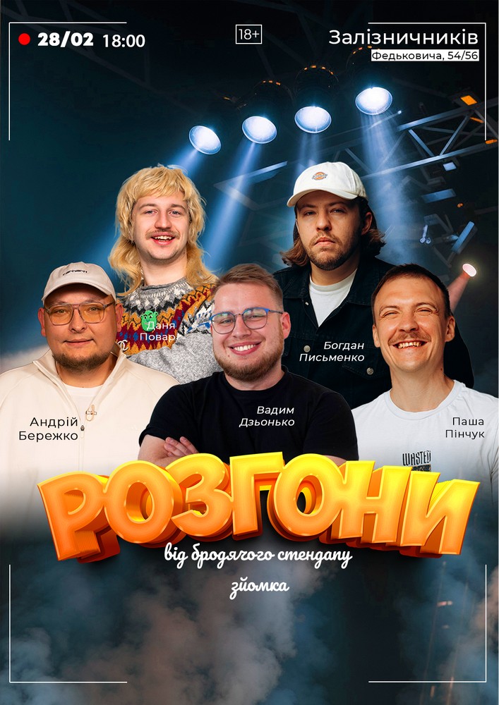 Розгони - імпровізаційний формат де коміки розповідають історії, ідеї для жартів і разом доводять їх до готових комедійних монологів.
