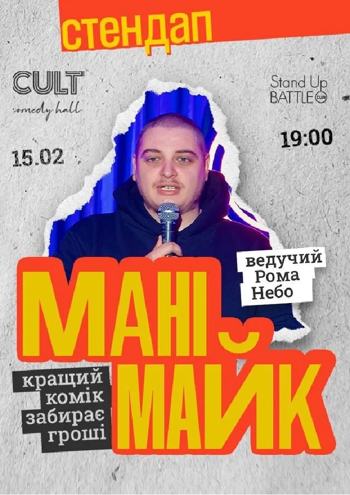 МаніМайк — це коли коміки виходять на сцену з найкращими жартами, заряджають зал сміхом і створюють справжній кайф від шоу!