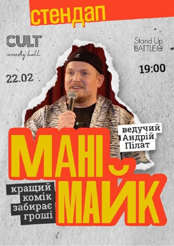МаніМайк — це вечір, де на сцену виходять коміки зі своїми найсмішнішими історіями та жартами, щоб показати, хто справді вміє тримати зал у напрузі сміху. Кожен учасник бореться за грошовий приз і звання «коміка тижня», а глядачі отримують найважливіше — можливість сміятися від душі і впливати на результат, саме ваш сміх визначає переможця вечора!