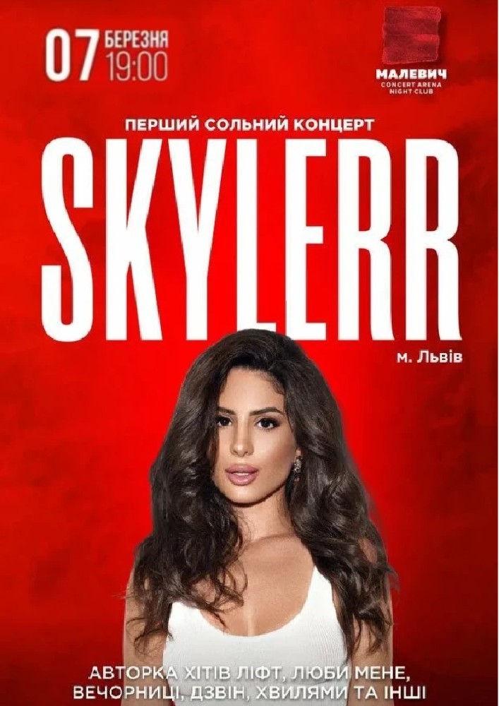 Її пісні миттєво стають трендами TikTok, а харизма захоплює з першого погляду. SKYLERR — одна з найяскравіших зірок нової української сцени, володарка премії «МУЗВАР-2023» та учасниця нацвідбору «Євробачення-2024».