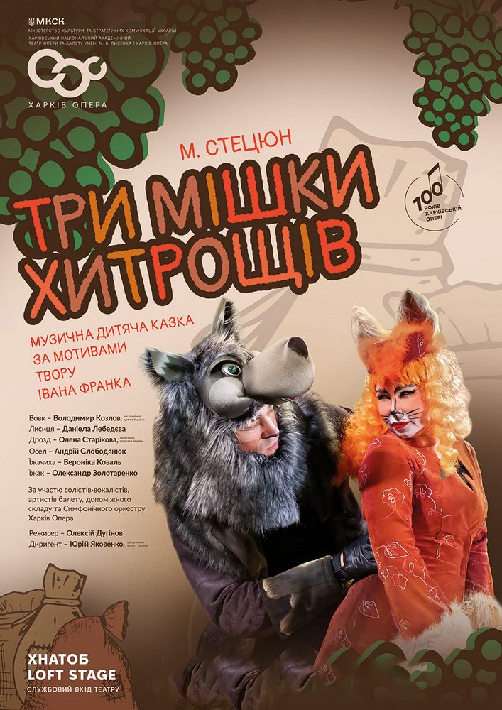 Завітайте до чарівного світу української опери-казки за мотивами Івана Франка! У цій веселій та повчальній виставі переплітаються музика, гумор та народна мудрість. Талановита команда митців на чолі з диригентом-постановником Юрієм Яковенком та режисером-сценографом Олексієм Дугіновим створила яскраве дійство, де хитра Лисиця, довірливий Осел, мудрий Дрозд та інші лісові мешканці з’являються на сцені у виконанні чудових артистів. Ця вистава – чудова нагода для всієї родини поринути у світ казки, насолодитися оперним мистецтвом та отримати заряд позитивних емоцій!