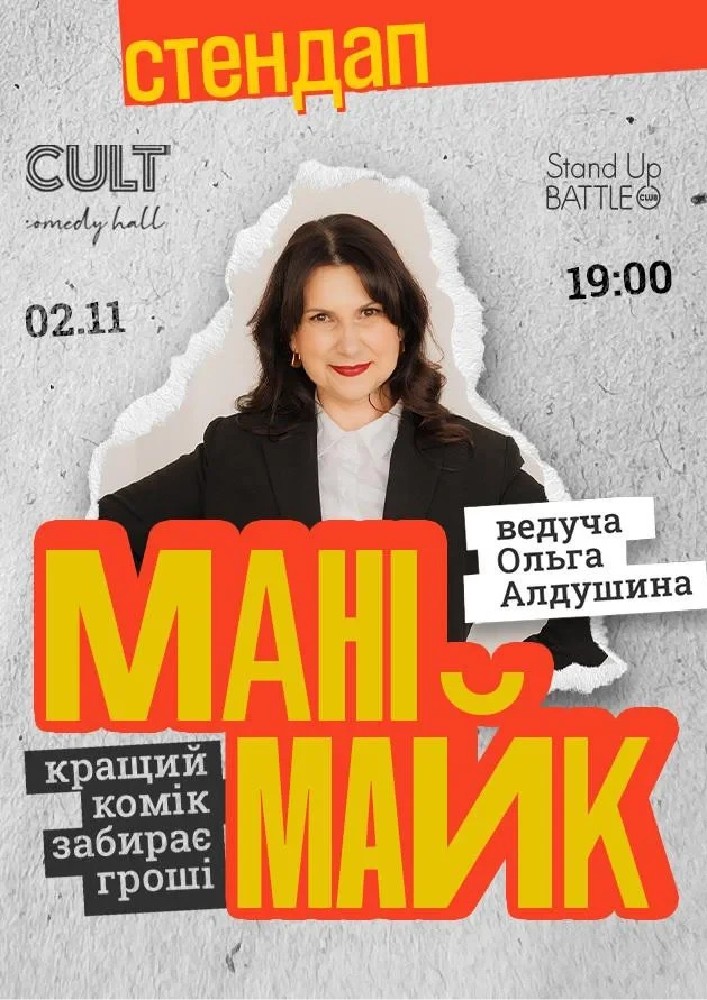 Запрошуємо вас на наш енергійний недільний МаніМайк — вечір, де коміки виходять на сцену, щоб випробувати нові жарти, зарядити зал сміхом і поборотися за звання «коміка тижня»! Це справжній стендап — без прикрас, без фільтрів, тільки живі емоції та чесний гумор.