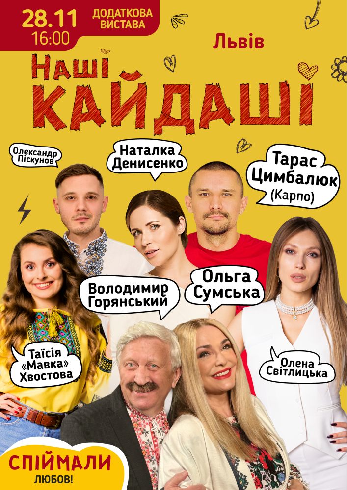 Наші Кайдаші спіймали Любов! Не пропустіть можливість побачити Кайдашів у сучасній і неймовірній пригоді, яка така близька кожному українцю. Адже вона про нас. Про усіх нас. Справжній майстер клас з театрального мистецтва та Життя...Нашого Життя... З усмішкою, нашим гумором і Великим Коханням!