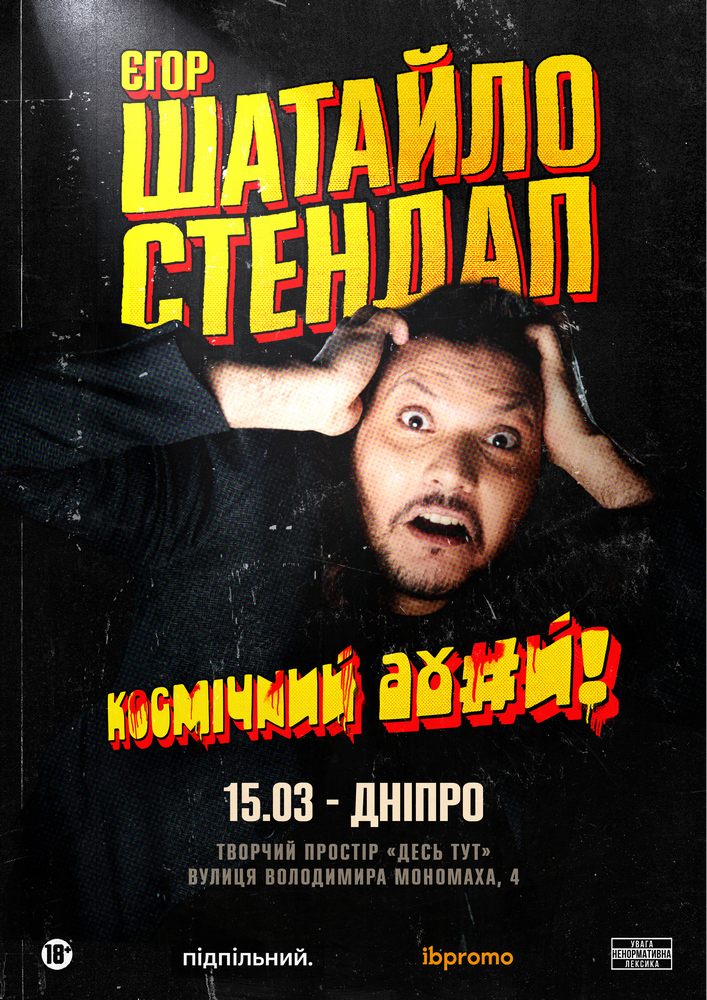 Єгор Шатайло вирушає в тур з новим стендап концертом «Космічний Аху#й». Нові жарти, нова програма. Вас чекає більше години сміху крізь біль, болю крізь сміх, ах#ю (в межах розумного), легкої рефлексії та важкої чудасії. Всіх чекаємо усюди,де б він не був. Беріть квитки.