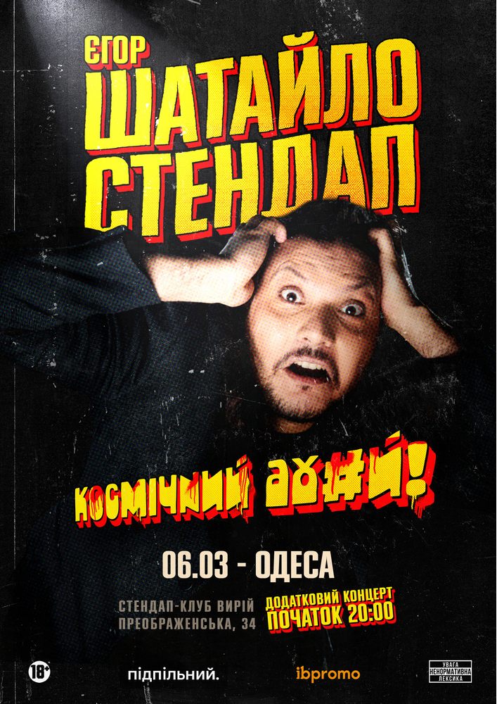 Єгор Шатайло вирушає в тур з новим стендап концертом «Космічний Аху#й». Нові жарти, нова програма. Вас чекає більше години сміху крізь біль, болю крізь сміх, ах#ю (в межах розумного), легкої рефлексії та важкої чудасії. Всіх чекаємо усюди,де б він не був. Беріть квитки.