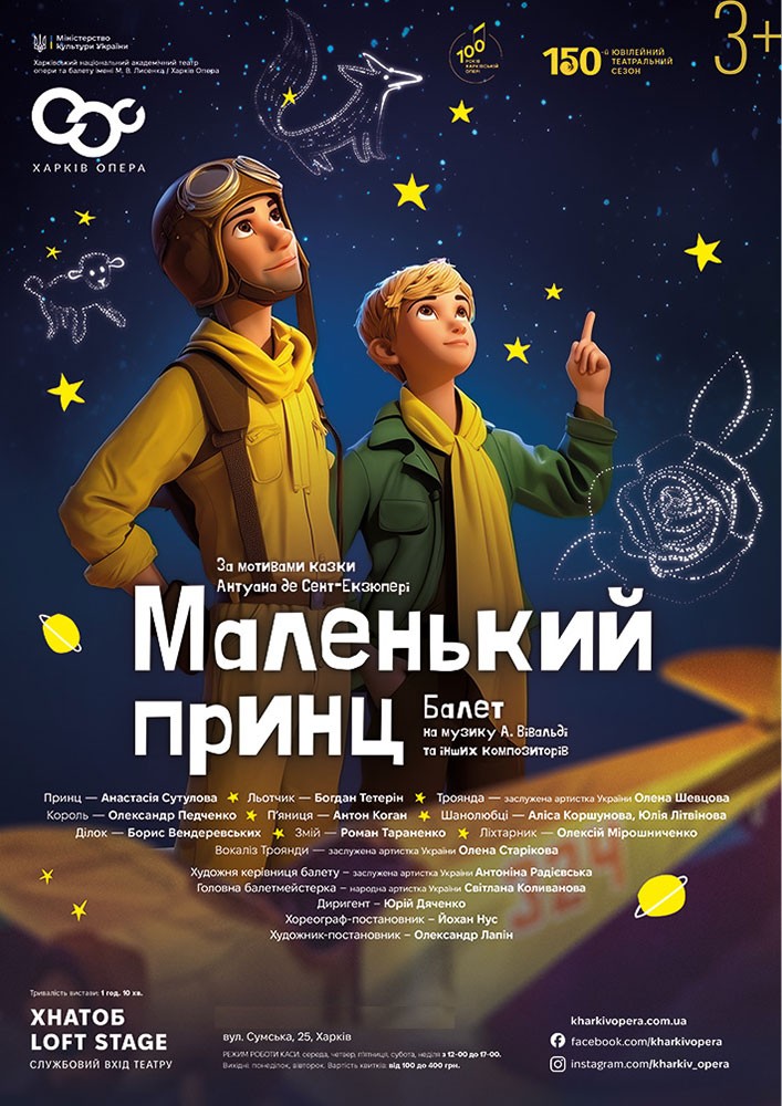 «Маленький принц» – це не просто казка, це притча для дорослих, розказана мовою тіла. У цьому балеті філософський світ Антуана де Сент-Екзюпері оживає через вишукану хореографію, де кожен жест має значення. Разом із головним героєм ми мандруватимемо між зірками, зустрінемо гордовиту Троянду та мешканців різних планет, щоб зрештою зрозуміти найголовніше: «Найголовнішого очима не побачиш. Зорким є лише серце». Це вистава про вірність, відповідальність та вміння бачити дива у буденних речах. Запрошуємо вас у політ, який змусить серце битися частіше.